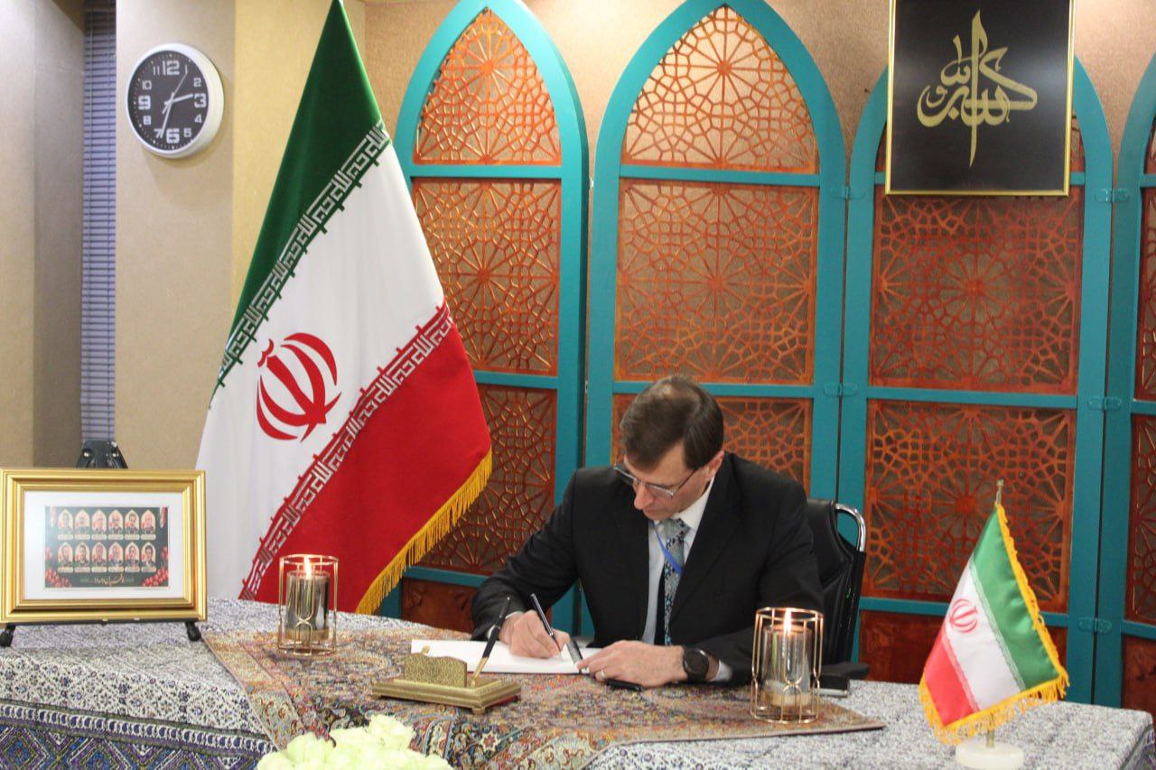 Signing the book of condolence for the martyrdom of Iranian military commanders university professors women and children following the Zionist regim