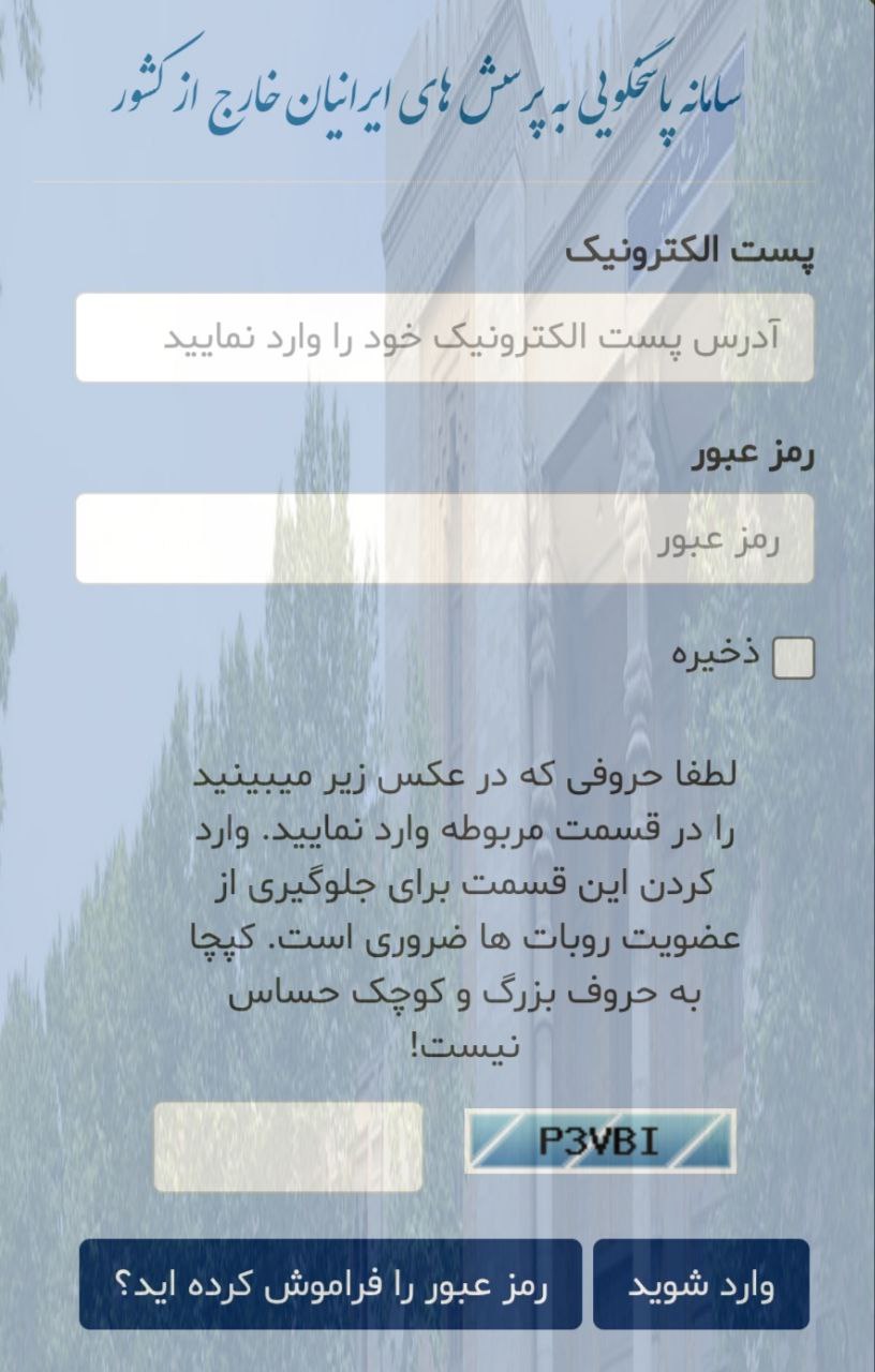 سامانه پاسخگویی به پرسش های ایرانیان خارج از کشور (porsesh.mfa.ir):