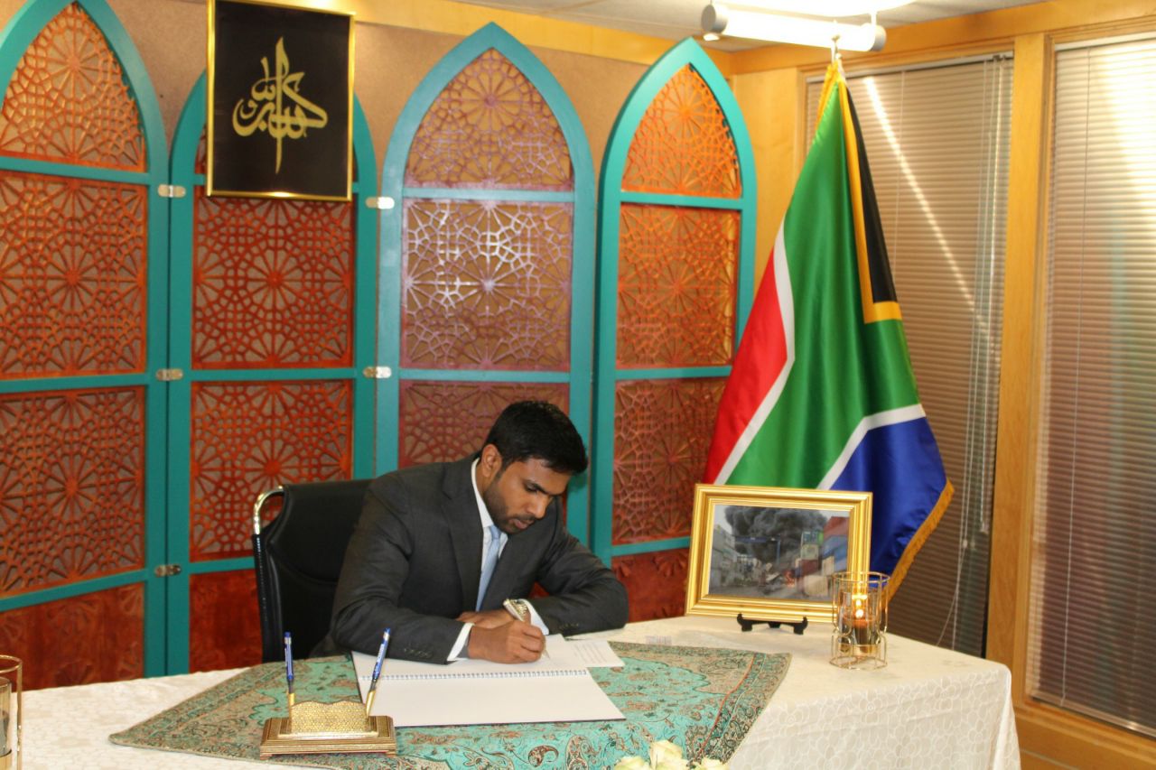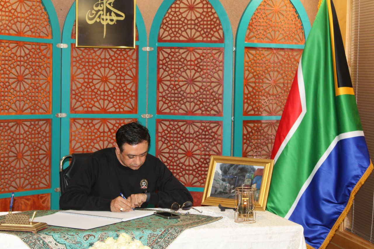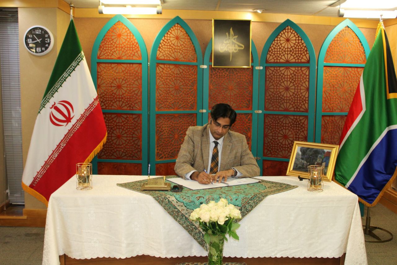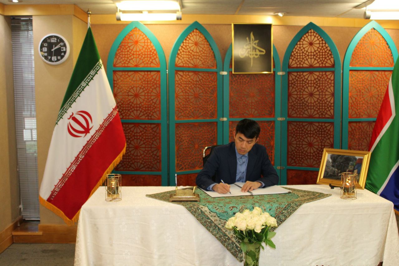 3. امضای دفتر یادبود قربانیان حادثه انفجار بندر شهید رجائی